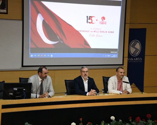 SAKARYA- Sakarya Üniversitesi Bilim İletişimi Ofisi tarafından düzenlenen Bilim Söyleşileri serisinin sekizinci programında, “15 Temmuz Darbe Girişiminin Toplumsal ve Politik Anatomisi” başlıklı panel gerçekleştirildi. Panelin konuşmacıları Prof. Dr. Kemal İnat ve Prof. Dr. Mustafa Kemal Şan olurken, oturumun moderatörlüğünü ise Sakarya Üniversitesi Rektör Yardımcısı ve İletişim Fakültesi Dekanı Prof. Dr. Özer Köseoğlu üstlendi.
